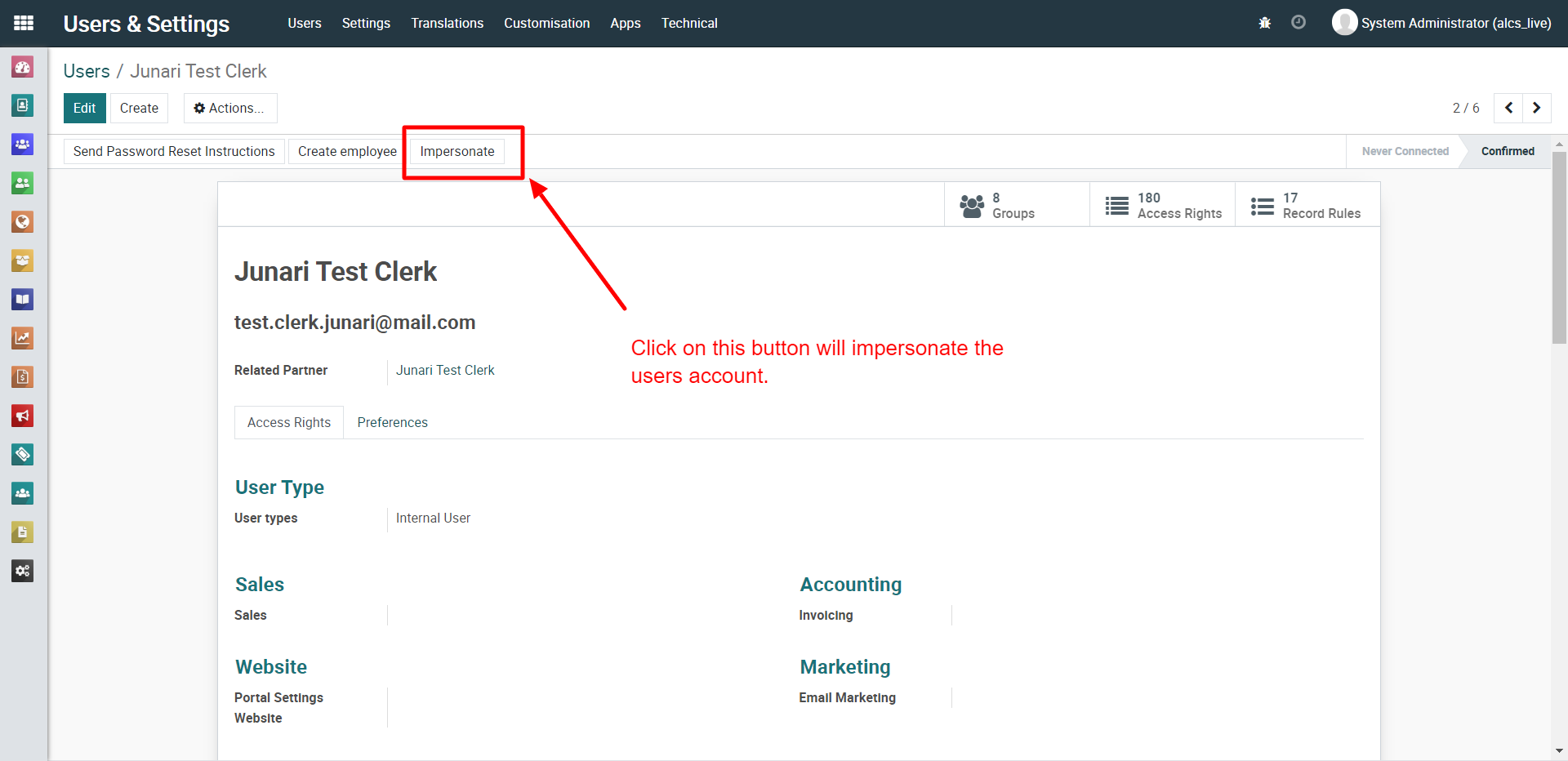4) Once this configuration is done The Impersonate button will be visible in the user's header.