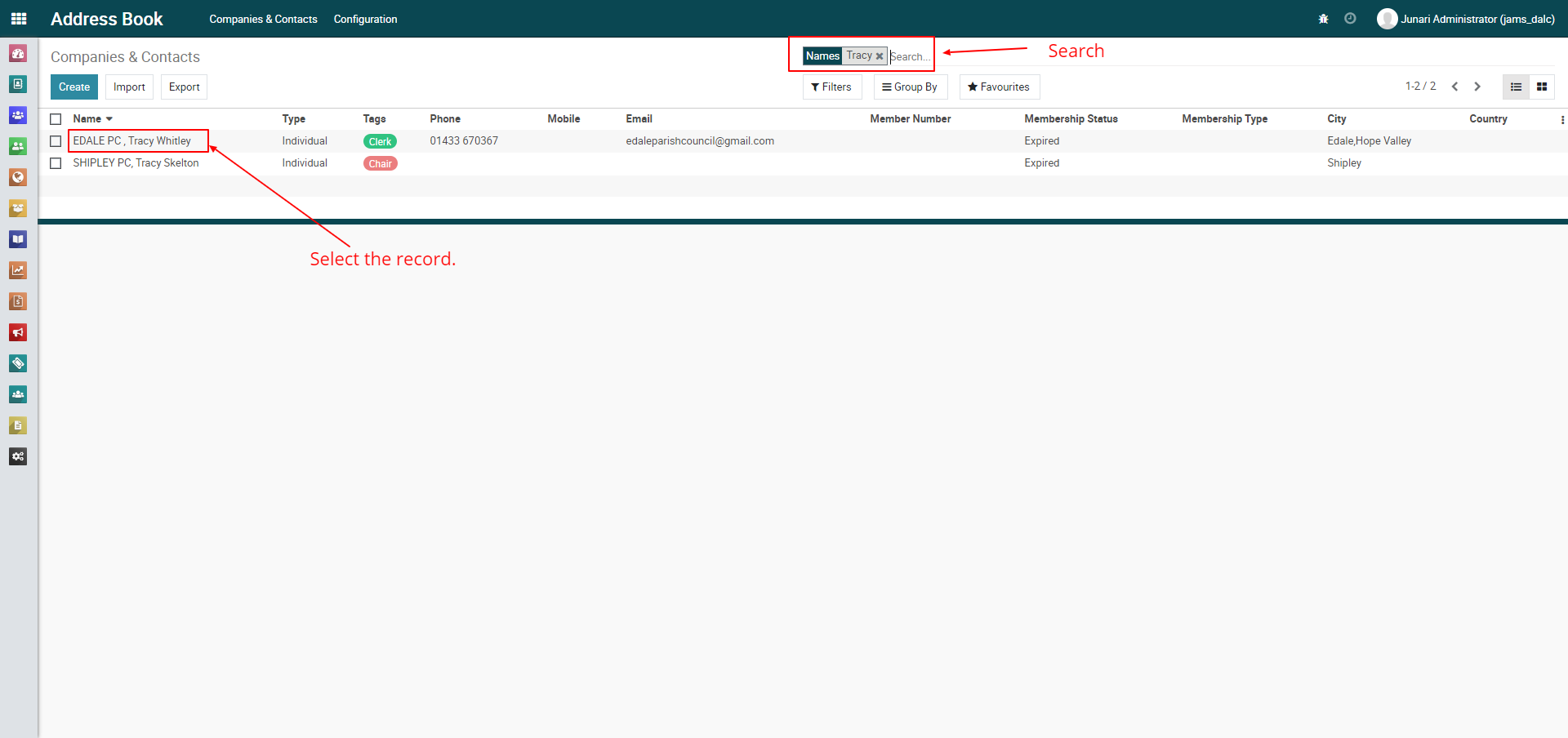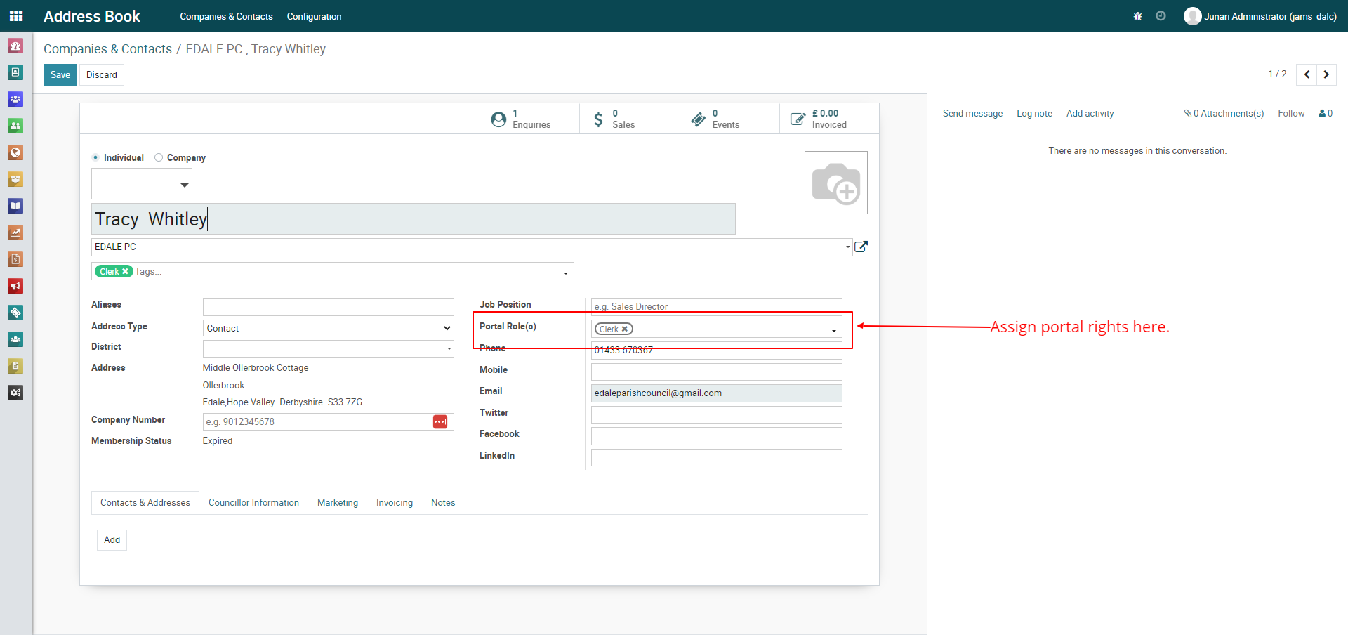 Once open in the form view edit the record and assign the appropriate portal rights.