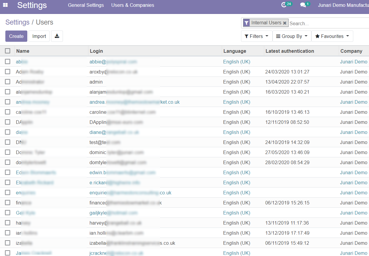 In the main menu (top left), select Settings, followed by the Users menu. You should be presented with the Users list as shown below: