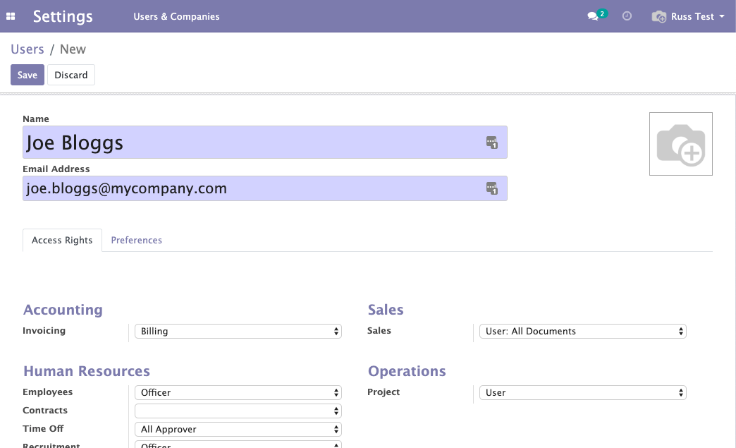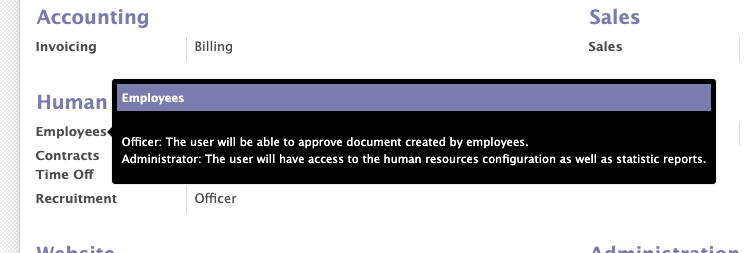In the Access Rights tab, select what level of access the user should have to each area of your system. You can hover over many of the labels to get further information about what each access level includes