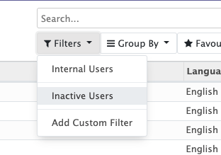 In the Filter box (top right), remove the “Internal Users” filter, then select the “Inactive Users” filter as shown below